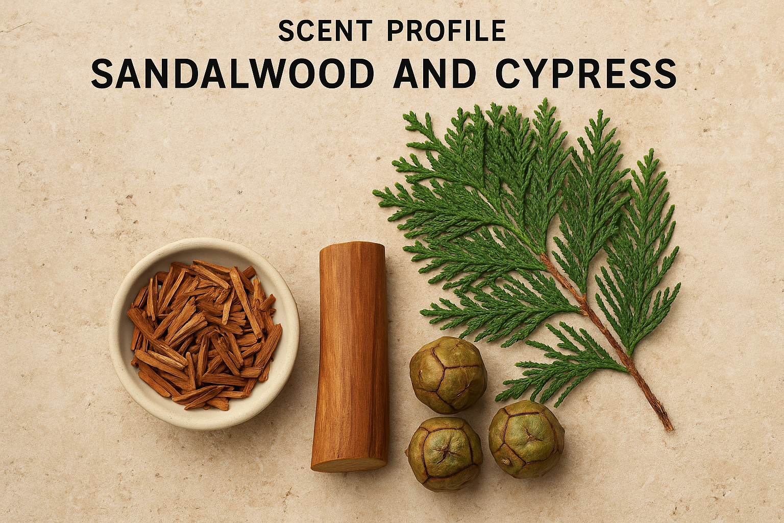 Scent synergy: sandalwood (warm, deep, sacred) + cypress (fresh, strong, uplifting)
